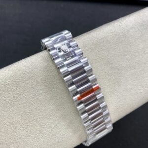 Fake Iced Out Rolex Day-Date 40 228248 Silver Index Dial Roman Markers on Jubilee Bracelet